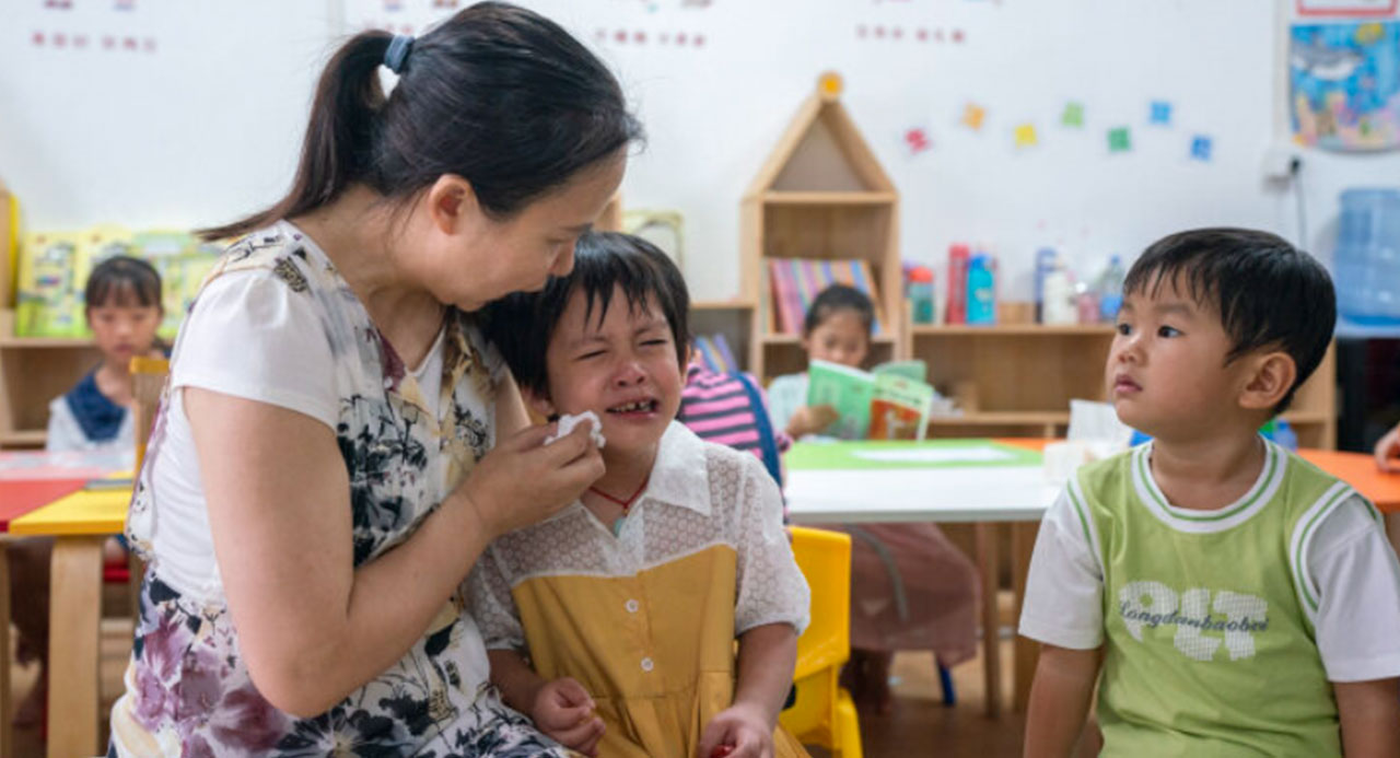 8月17日,托管中心老師在耐心地哄娃。記者 劉淑芳 攝