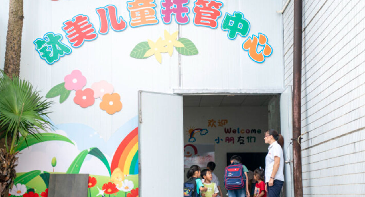 暑假期間,清遠(yuǎn)市鈦美鋁業(yè)有限公司部分員工將孩子送到兒童托管中心再上班。記者 劉淑芳 攝
