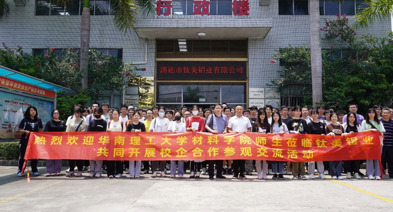 華南理工大學(xué)師生一行首先在講解員的帶領(lǐng)下逐一到熔煉鑄造、擠壓成型、氧化電泳、表面噴涂、精密制造以及模具設(shè)計等車間現(xiàn)場參觀學(xué)習(xí),詳細(xì)了解產(chǎn)品生產(chǎn)工藝,聽講解員解答同學(xué)的的疑問。其次,到行政樓感受企業(yè)文化、展廳參觀鋁制品汽車零部件、電子電器、高端家裝等樣品。最后,到鈦美商學(xué)院通過PPT進(jìn)一步了解企業(yè)狀況。